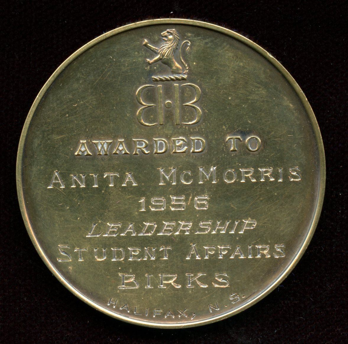 Issued for leadership in student affairs, 1956, silver, Halifax. In case of issue. 42.8 gms.