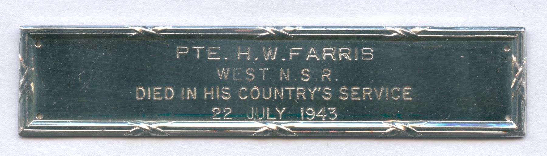 Issued to Pte. H.W. Farris, West Nova Scotia Regiment (with research) from Library and Archives Canada.