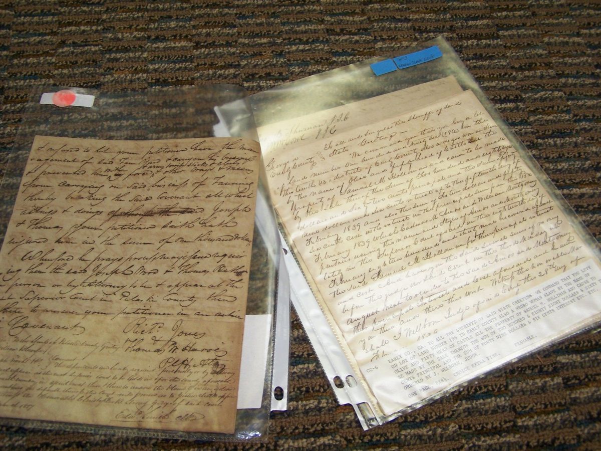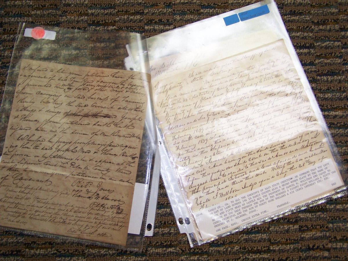 Three letters handwritten, 1817, 1839 and 1845, all mention exchanging black slaves as part of property transactions in Georgia. 4 pcs.
