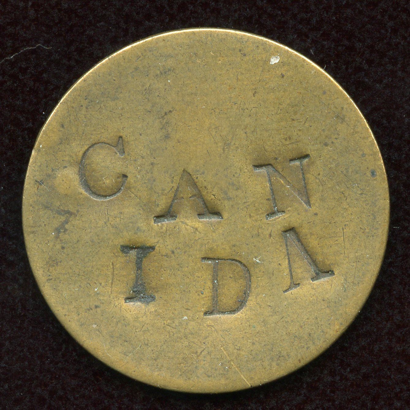 Can Ida/St. Amant, (1820 Halfpenny). Brass, usually found in copper. EF. An interesting colonial, often associated with the Blacksmith coppers. Two varieties exist, the other being dated 1820. McLachlan's hoard, part of which was published in The Numismatic and Antiquarian Society Journal in July, 1889 references sixty specimens which were found in a hoard consisted of discredited coppers circulating during the time of the Rebellion of 1837-8, the hoard contained 12,000 pieces, in three boxes that were discovered in the vaults of the Quebec branch of the Bank of Montreal. It has now become scarce and respected as an important piece in the Canadian colonial series. Ex:Mel Kyle, Ex:Saul Hendler