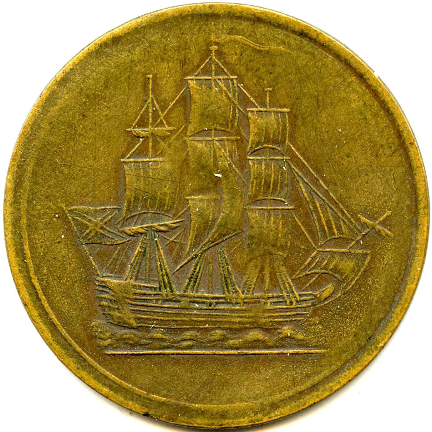 CH-LC-56A3, ↑↓, 5.47g, (XRF 87.91% cu, 8.02% zn) Token has a brass look, VF+. 1pc. Note: this lot is part of The Harry N. James Collection.