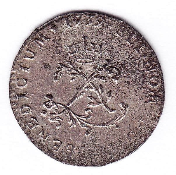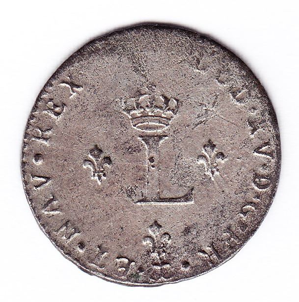 Br 508. Billon Double Sol of 24 Deniers. 1739 &. (Aix). - Vlack 232b. R-8. As above, but the mint mark not struck up though the coin has virtually no wear. The différents are both apparent, which verifies the attribution. Ex:Dr. O'Connor collection at Geoffrey Bell Auctions, July 2009.