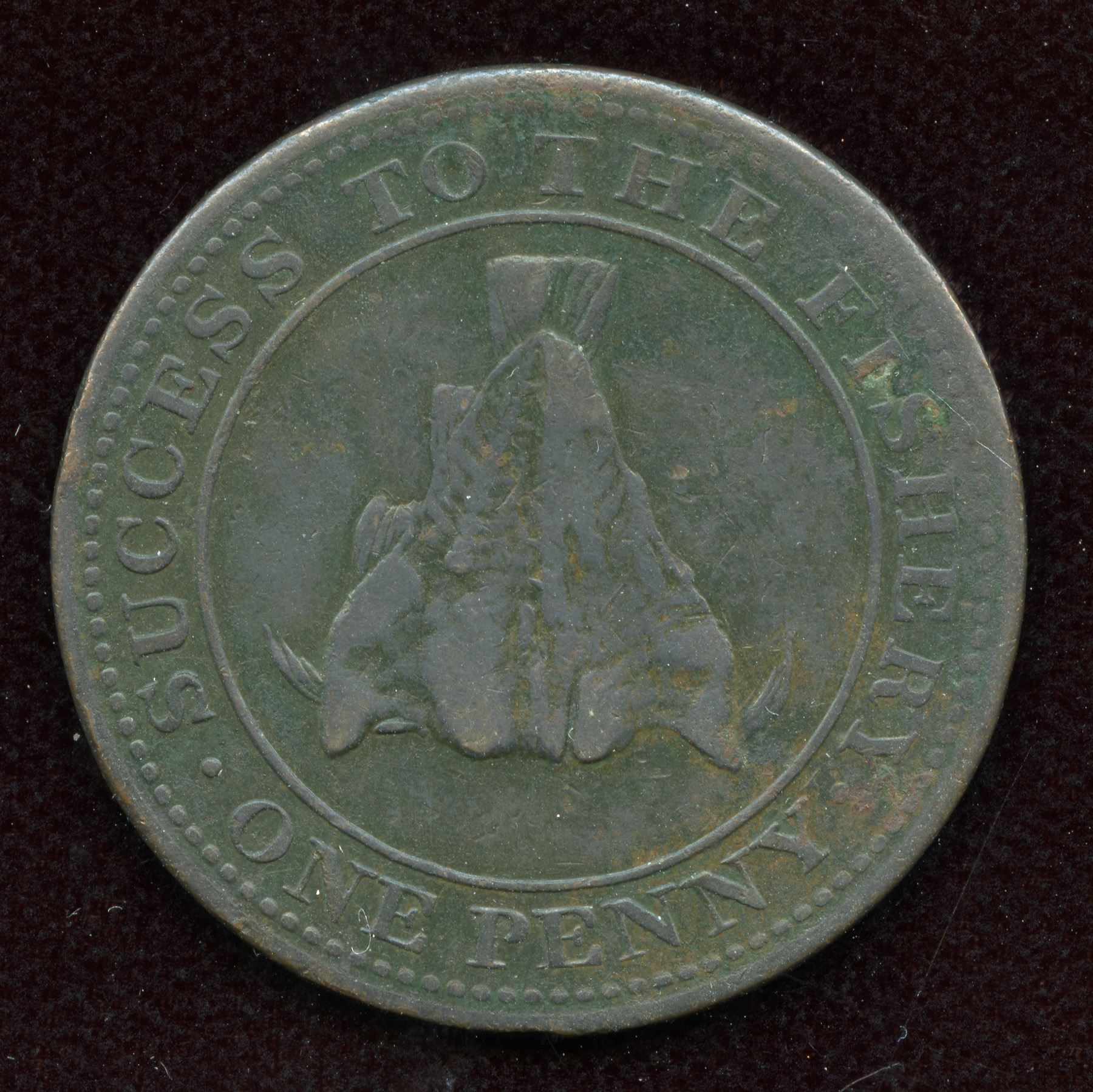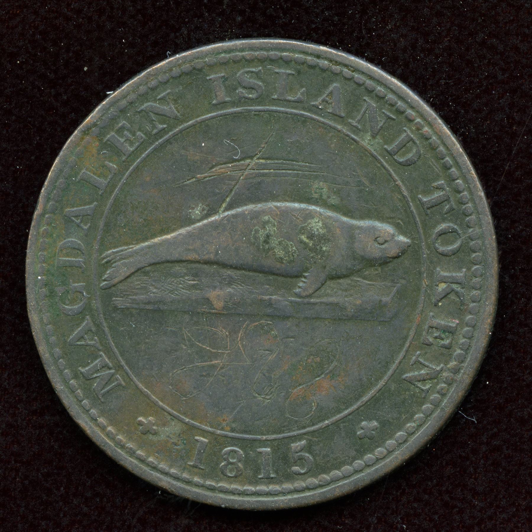 CH LC-1, beautifully mirrored surfaces, iridescent lustre, and a sharp strike as one would expect. A few field marks, a couple of edge nicks, and cabinet friction on some of the high points, all from handling over the years. Engraved by Thomas Halliday, struck by Edward Thomason at Birmingham, and issued by Admiral Sir Isaac Coffin in support of his vainglorious mission to settle the Magdalens as his personal fiefdom. Proofs of this token are known and do surface from time to time. This example is Ex:Montreal Stamps & Coins auction, 1992, lot 243.