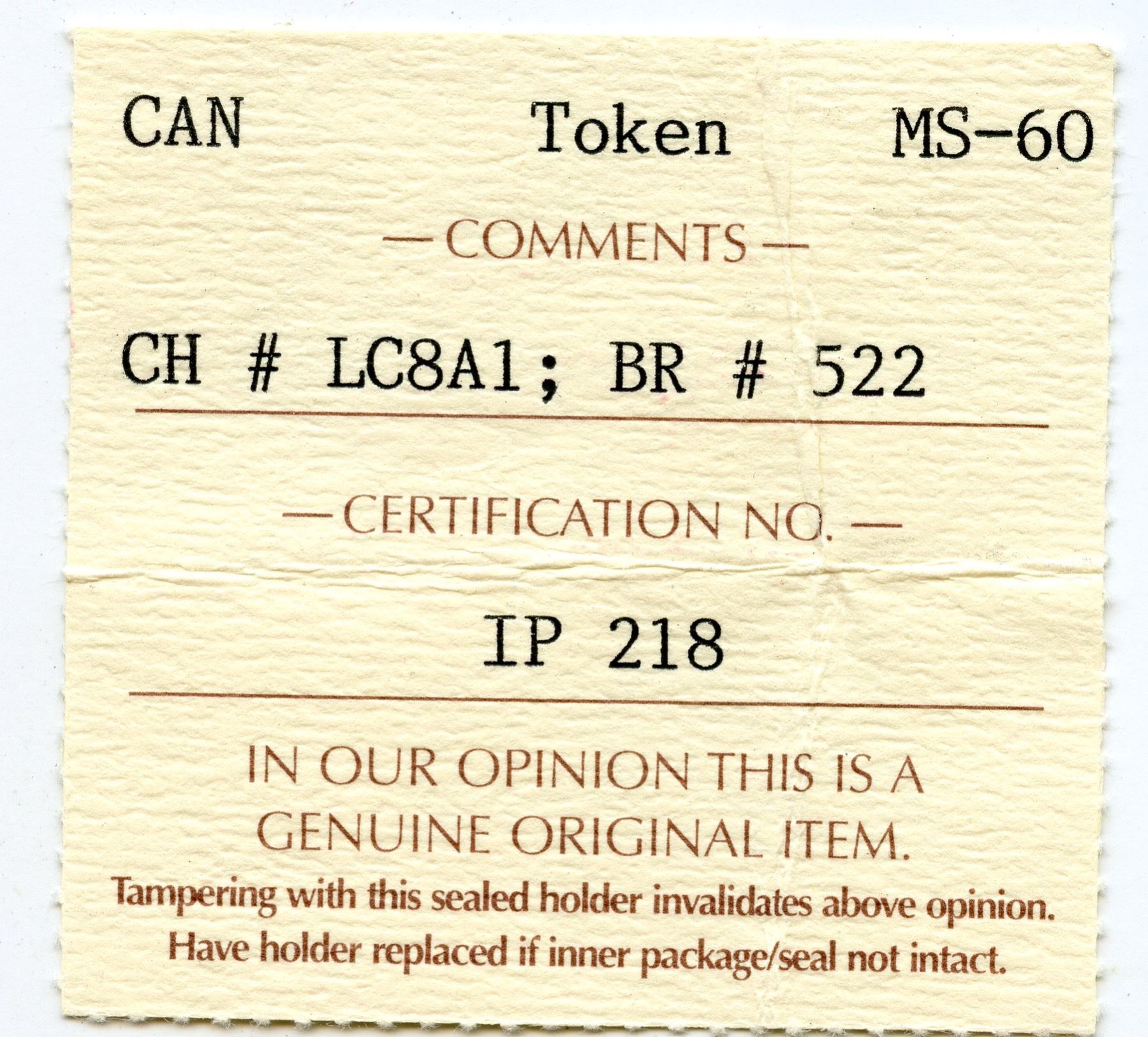 CH LC-8A1, Courteau 1L, 9.34g. Ex. GBA 2017 Spring Expo, Lot 356, ICCS MS-60 tag attached.