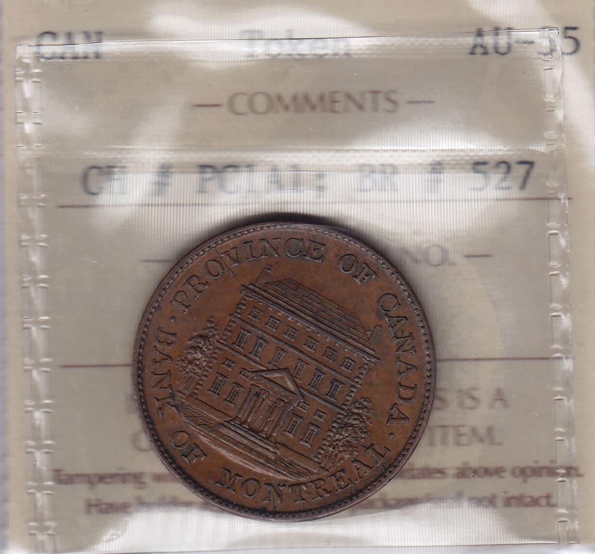 CH PC-1A1. ICCS AU-55. Die breaks from border bead, between OV to left eave, and from top of L to tree leaf.