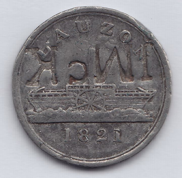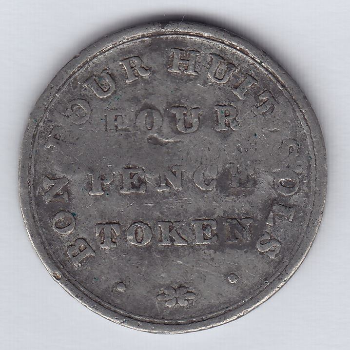 CH TR-2B. With countermark of James McKenzie, who had at first leased the ferry from John Goudie in 1825, and finally purchased it from Sir John Caldwell in 1828. White metal. Nice VF.