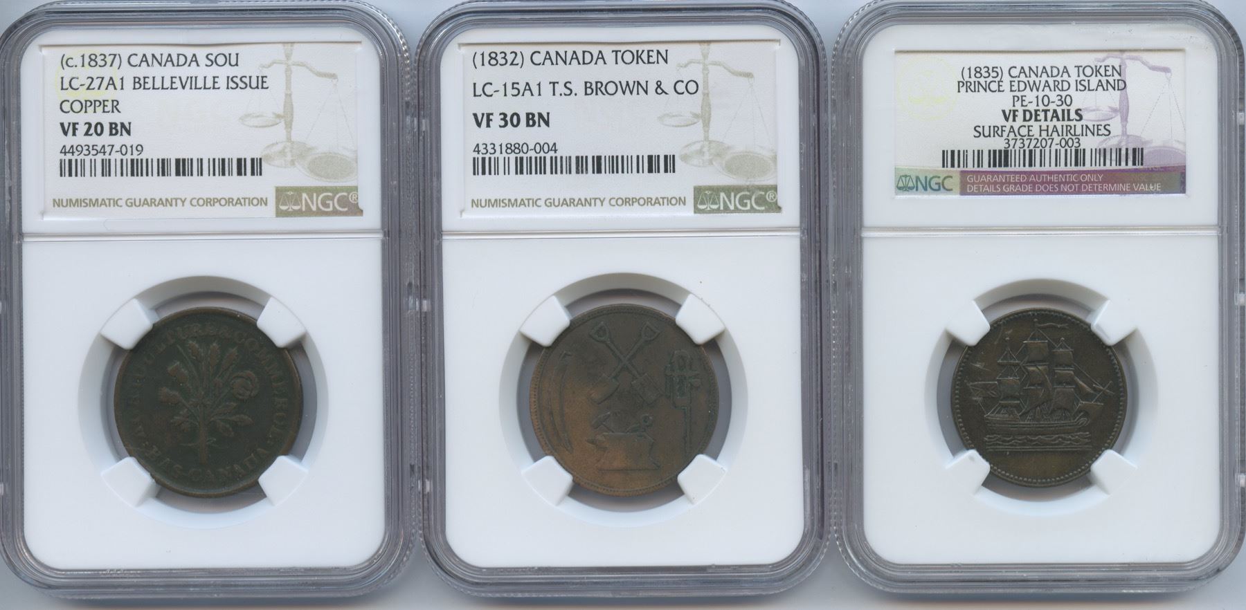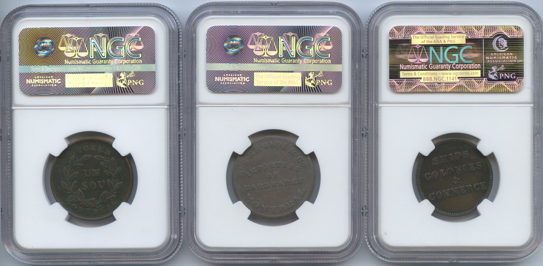Br. 561, CH LC-15A1, NGC VF-30; Br. 691, CH LC-27A1, NGC-20; Br. 997, Lees 30, NGC VF details (surface hairlines). 3 pcs.