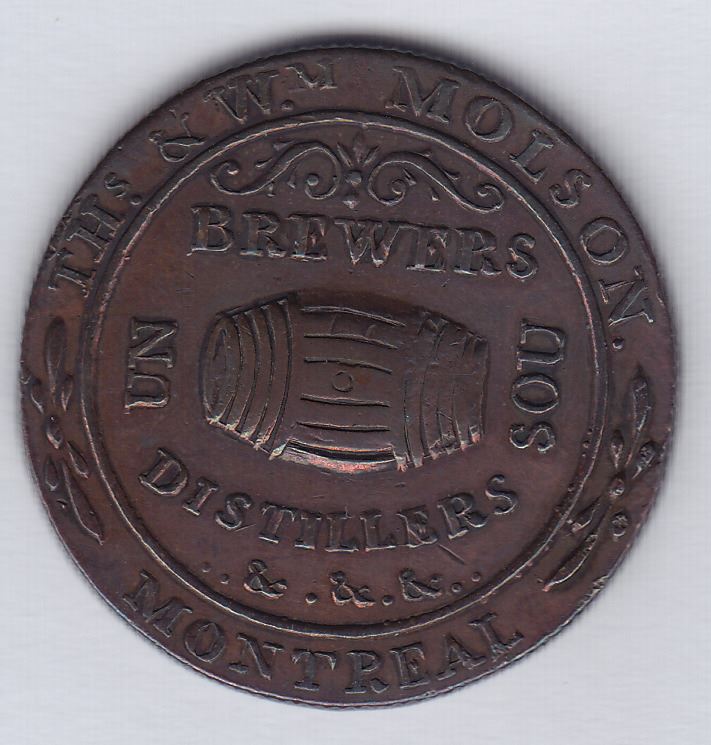 By Jean-Marie Arnault. Thin reeded flan. 8.25 grams. CH LC-16A3. EF, edge bruise. With: Molson's 200th anniversary token, 1986. Unc.