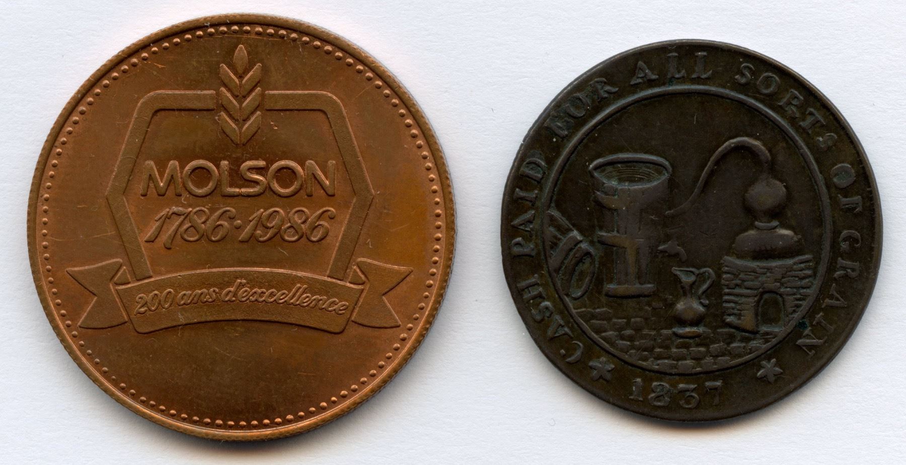 By Jean-Marie Arnault. Thin reeded flan. 8.25 grams. CH LC-16A3. Nice EF. Includes: Molson's 200th anniversary token, 1986. 2 pcs.
