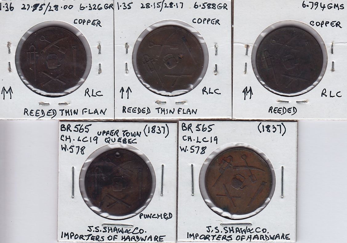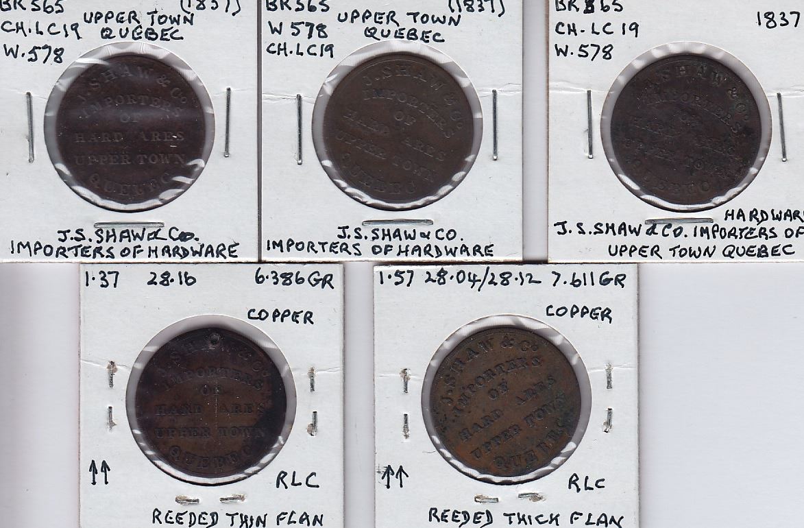 Five of the Shaw storecards, graded VF, three in VG-Fine, one holed. CH LC-19A1. 5 Pcs.