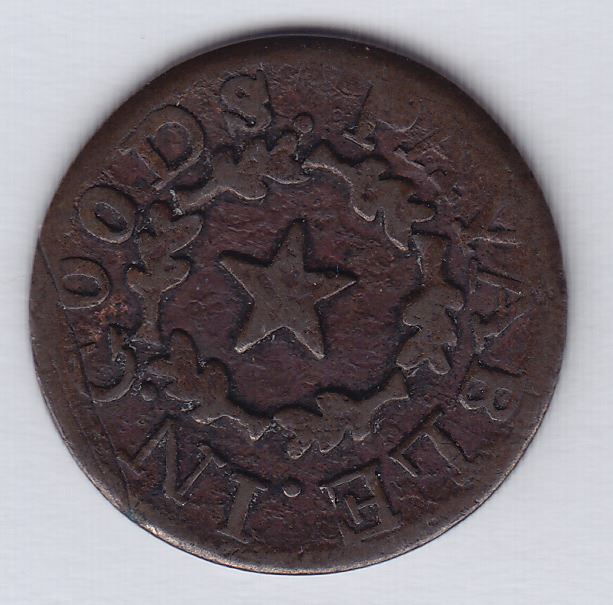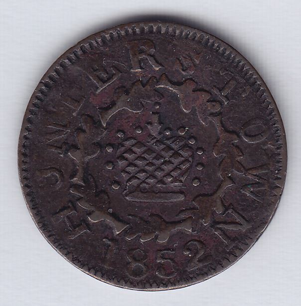 Copper. 4.50 grams. N.N. 23 mm. CH MT-4. Graded as VF by a previous owner, we believe it is superior to that. It is stronger than the specimen in the Hoare sale of September, 2012, which hammered at $9,000. Chris Faulkner's writeup in that sale gives a most complete history of the lumber company.
