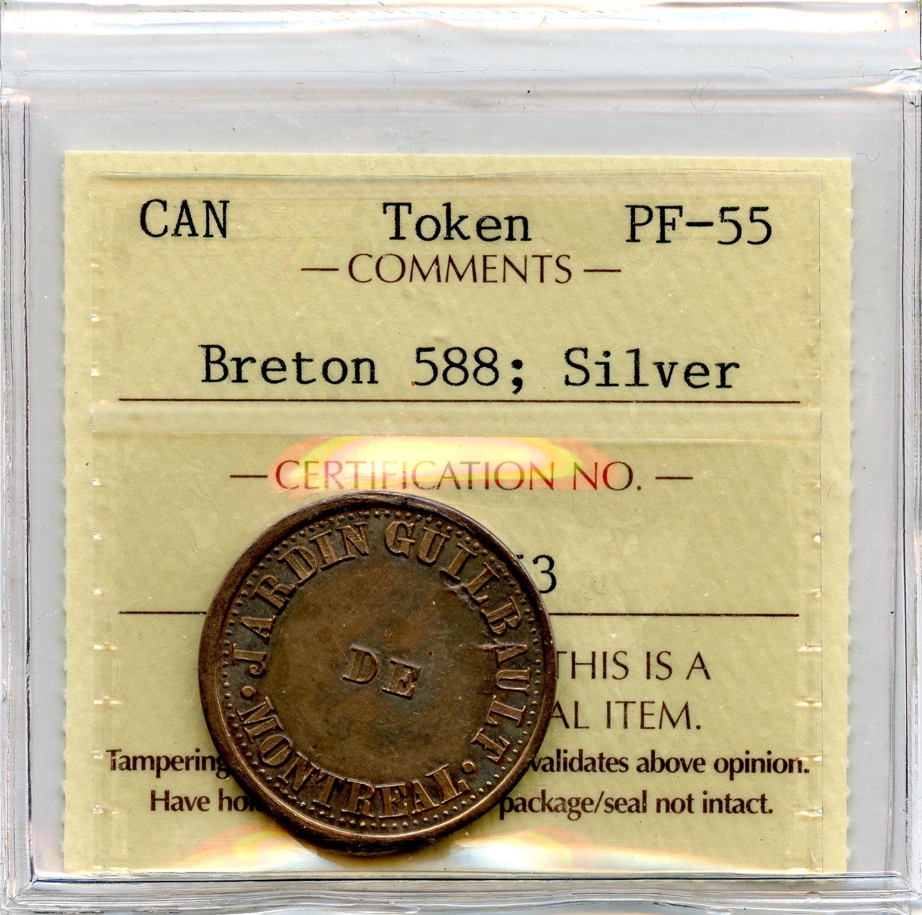 Breton 588 in Silver, Jardin Guilbault, Montreal. Jardin Guilbault, Montreal, the XRF evaluation indicates 98% Ag, 2% Cu, Seldom offered and scarce, Graded by ICCS PF-55.