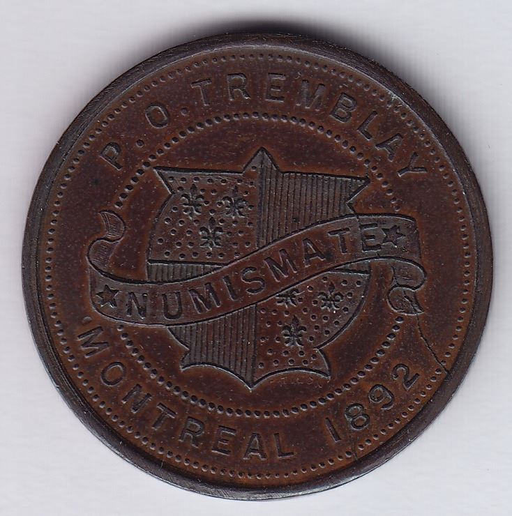 By Charles Tison. (325 Struck) SUCCESS TO THE NUMISMATIST. Copper. AU. Die break slightly less radical, running through left of last A stroke in CANADA, to and through the same area described in the case of the preceding specimen the break from first A in CANADA is very thin, and only extends to the bottom of the sleigh, thus earlier than the last.