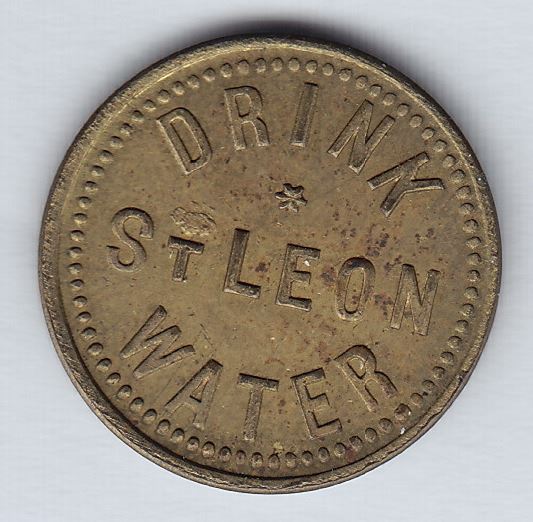 Drink St. Leon Water. The company didn't issue this token, which was likely another made for the avid collectors seeking to add a new variety to their collection. Brass. Unc.