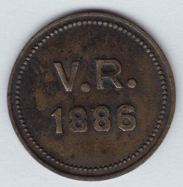(200 issued) Brass. VF-EF. This check is Rare, one of the most difficult post-Confederation pieces in the Breton series. The token was made for collectors, and never used at the hotel, according to Breton. The Temple specimen sold at Bell's Sale in September 2012 for $600., hammer price.
