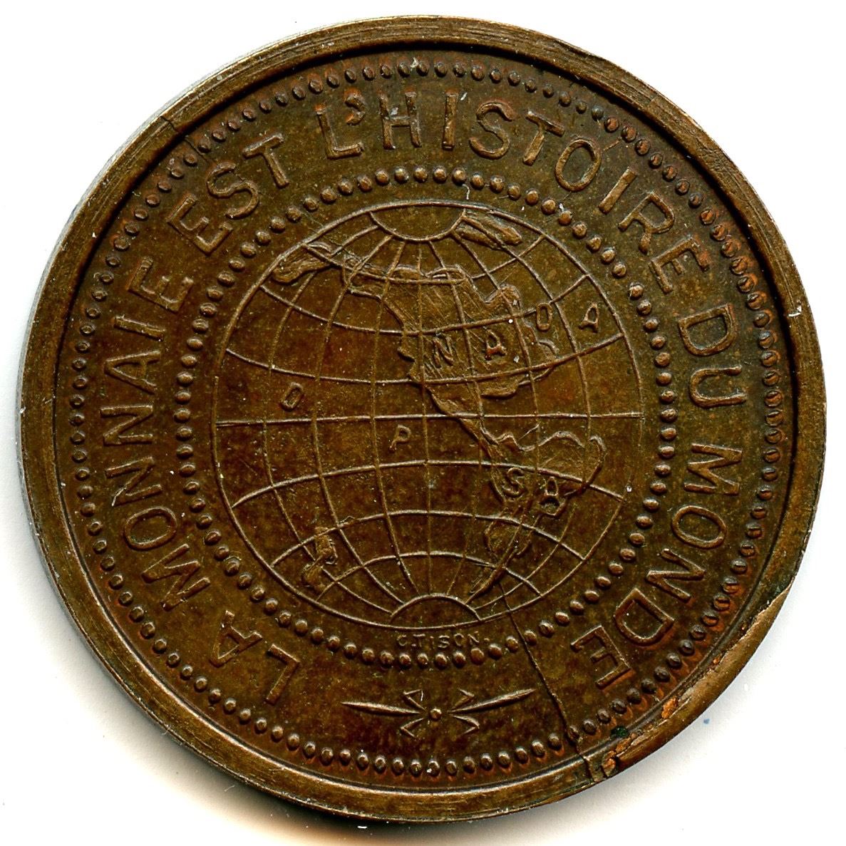 Copper. Mostly brown with original copper-red colour around legends, 55 pieces struck as per Breton. 24mm. 6.42g. Plain edge. Signed C. TISON. A rim cud appears above MONDE, and several radial cracks are seen on reverse. Unc. Ex. GBA Spring Expo 2023, lot #714. 1pc.