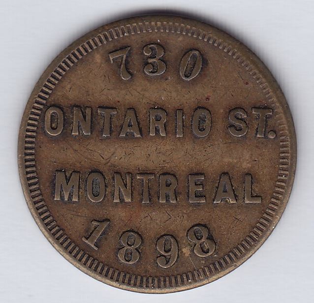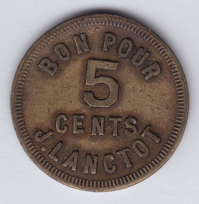 Good For 5 Cents. After five years the proper name occurs on the token. It is the scarcer of the two. Brass. VF.