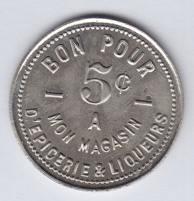 Bon Pour 5c. German Silver. Unc. Scarce in german silver.