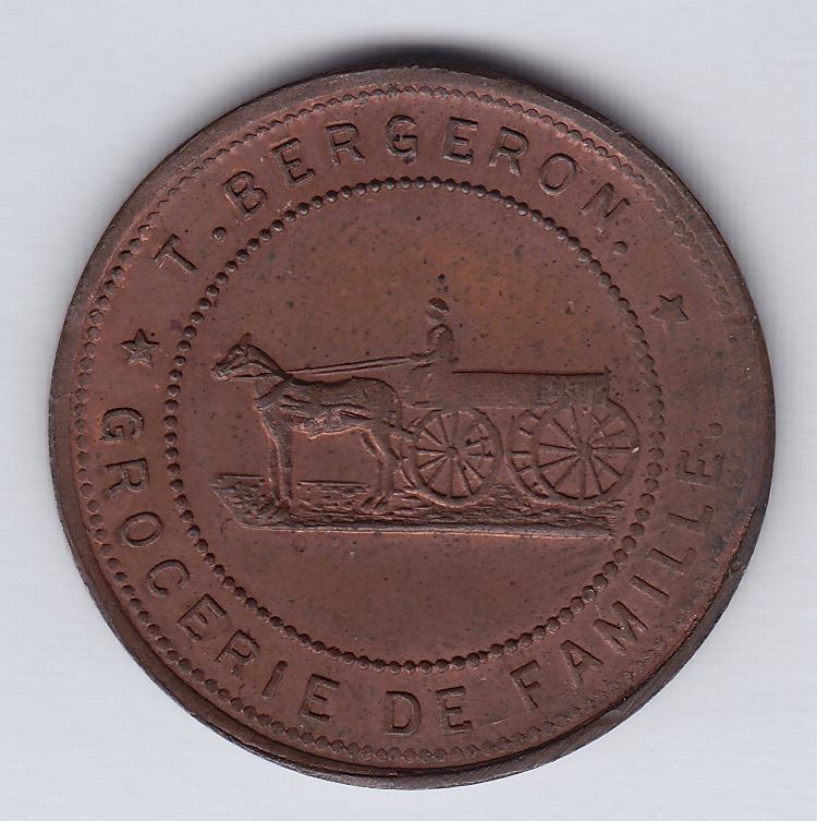By Charles Tison. (25 struck). Copper. Red Unc. From a later state of the die, with only the last three letters of Bergeron's name just barely visible.