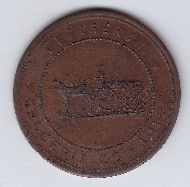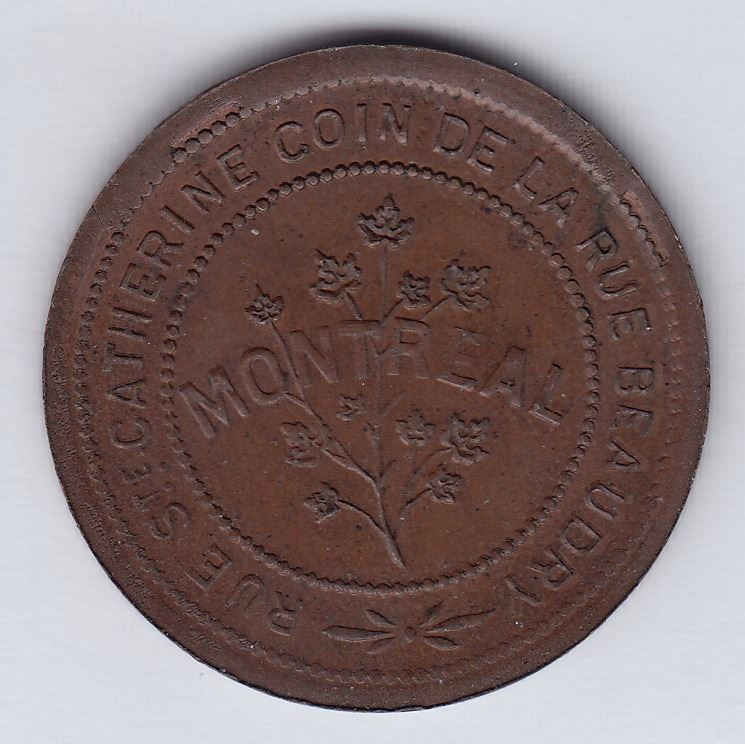 By Charles Tison. (25 struck). Copper. Unc. Double-Struck obverse, giving a distorted and wild looking image of the wheels of Bergeron's wagon.