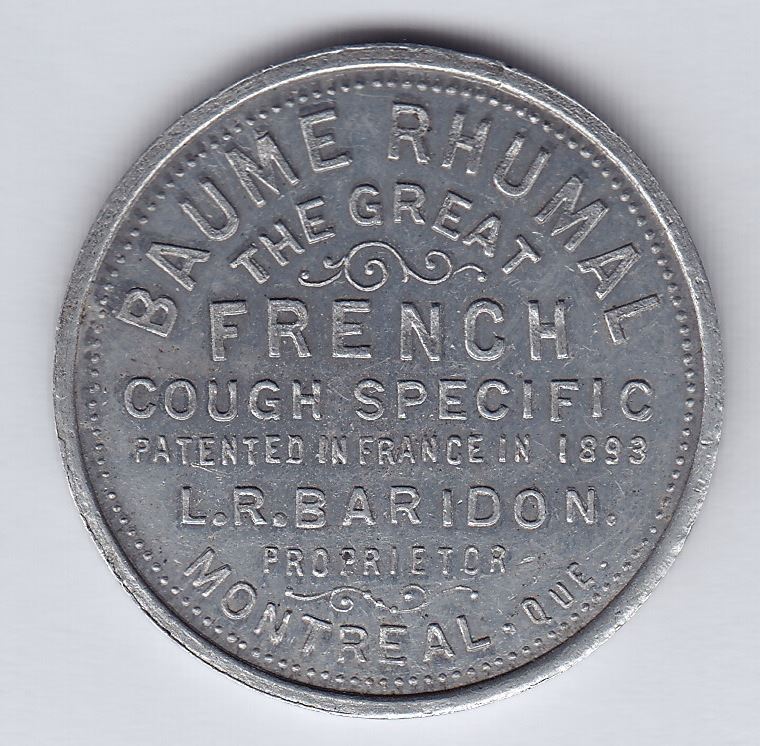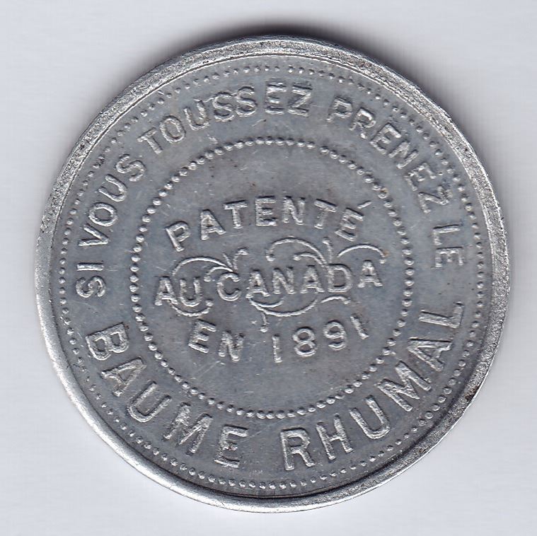 By Charles Tison. This token doubles as a numismatist token, Baridon having formed two collections, the first of which he sold to Breton. Examples of his bottle of Baume Rhumal are not infrequently met with. Aluminum. EF.