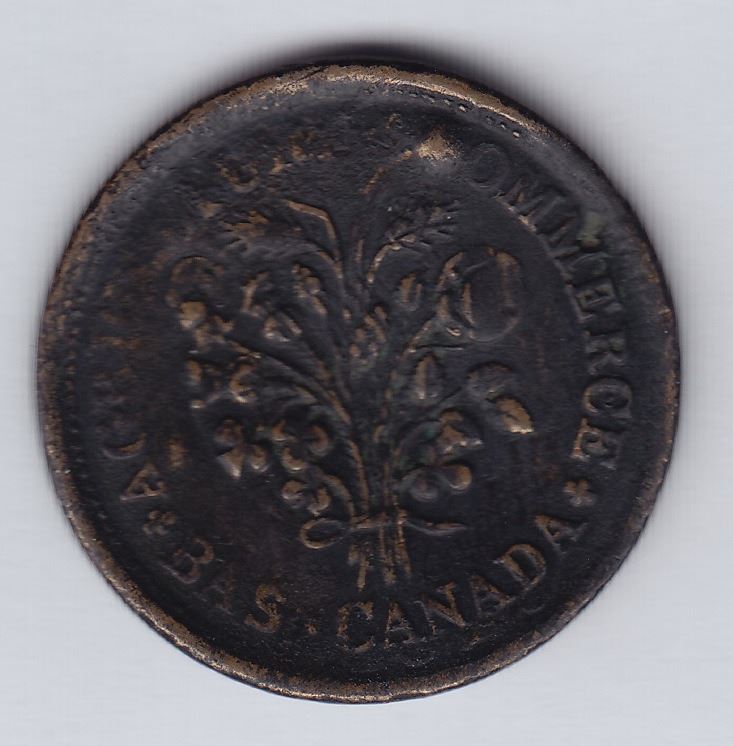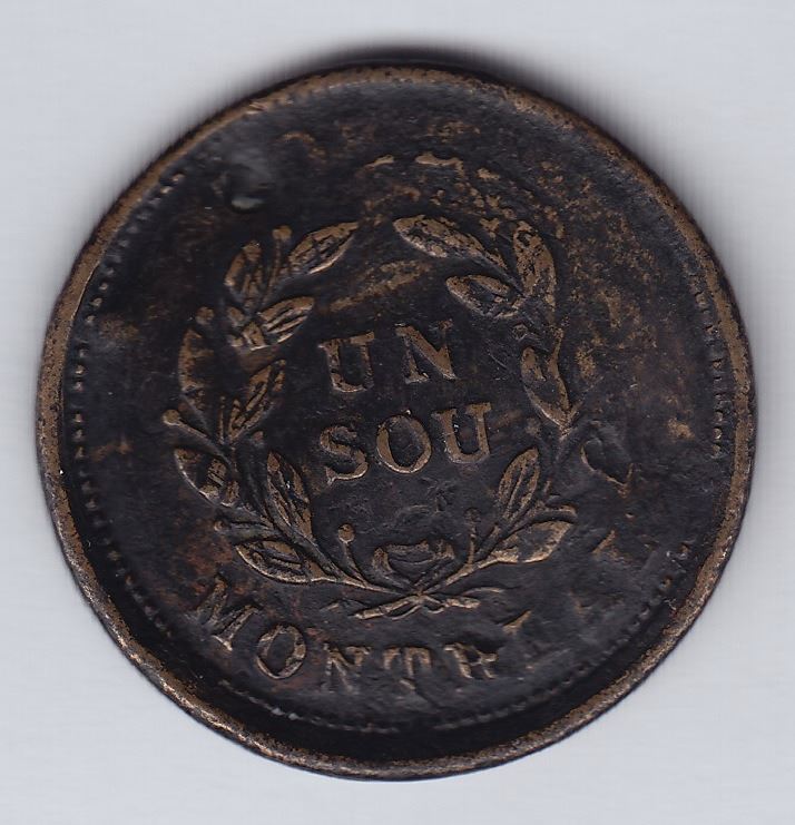 Brass, plain edge. CH LC-40A10. Overstruck, perhaps on a Bust & Harp undertype. The coin is unusual, and almost gives the appearance of being a new variety due to the melange between undertype and overstrike. Fine, dent.