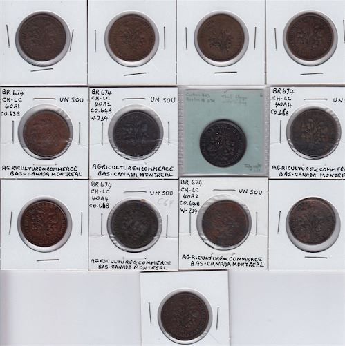 Copper, narrow fine (deep) milling, nine pieces; copper, lightly milled, three pieces, one off-centre; an apparently handmilled specimen. In all thirteen pieces. CH LC 40-A2. C. 64, in my opinion, on smaller flan is the common variety; much scarcer is C. 63. I've assigned both the lightly milled and the coarser, or really deeper milling to the same number; others may disagree. Various grades, say Fair-VF. 13 Pcs.