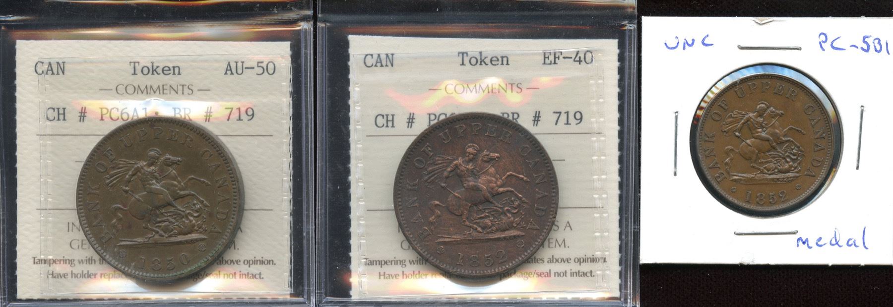 Br. 719, CH PC-6A1, ICCS AU-50; Br. 719, CH PC-6B3, ICCS EF-40, appears to have been cleaned in past with harsh retoning; Br. 720, CH PC-5B1, AU. 3 pcs.