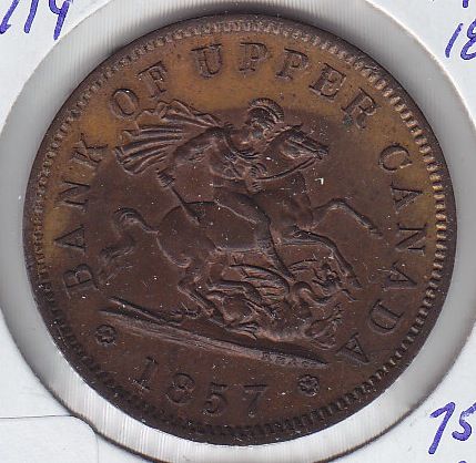 CH PC-6D, 1857 Bank of Upper Canada One Penny Token. Nice AU.