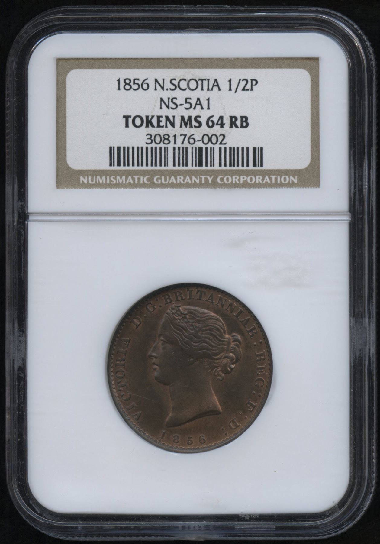 Br. 876, Nova Scotia Half Penny Token, 1856. CH NS-5A1. NGC MS64 RB.