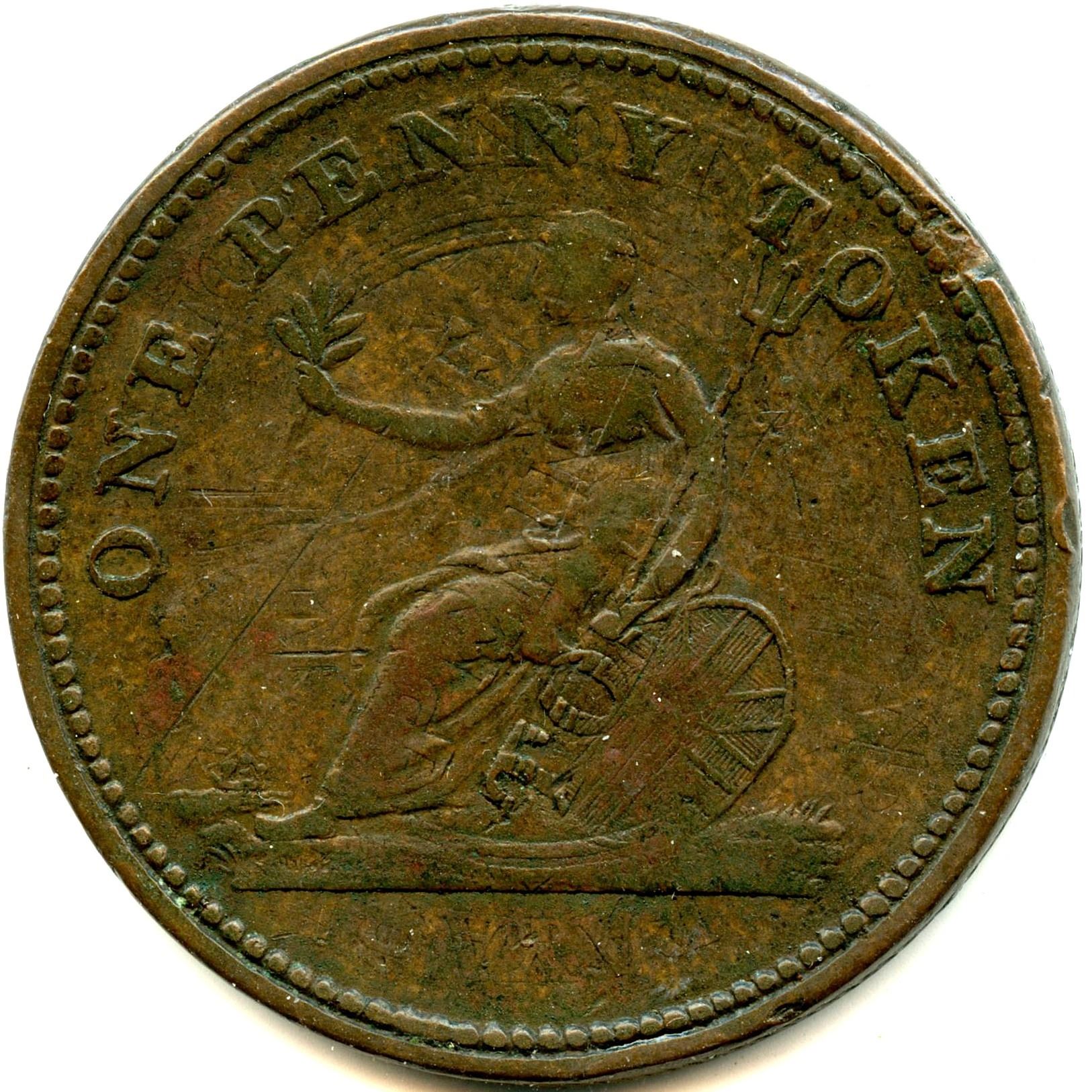 CH-WE-4B, Co. 32, Engrailed \\\\\\, Without reverse wreath under Britannia, F. Scarce. Not listed by Breton. 1pc. Note: this lot is part of The Harry N. James Collection.