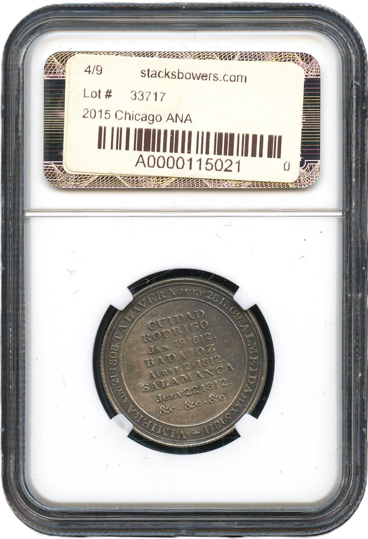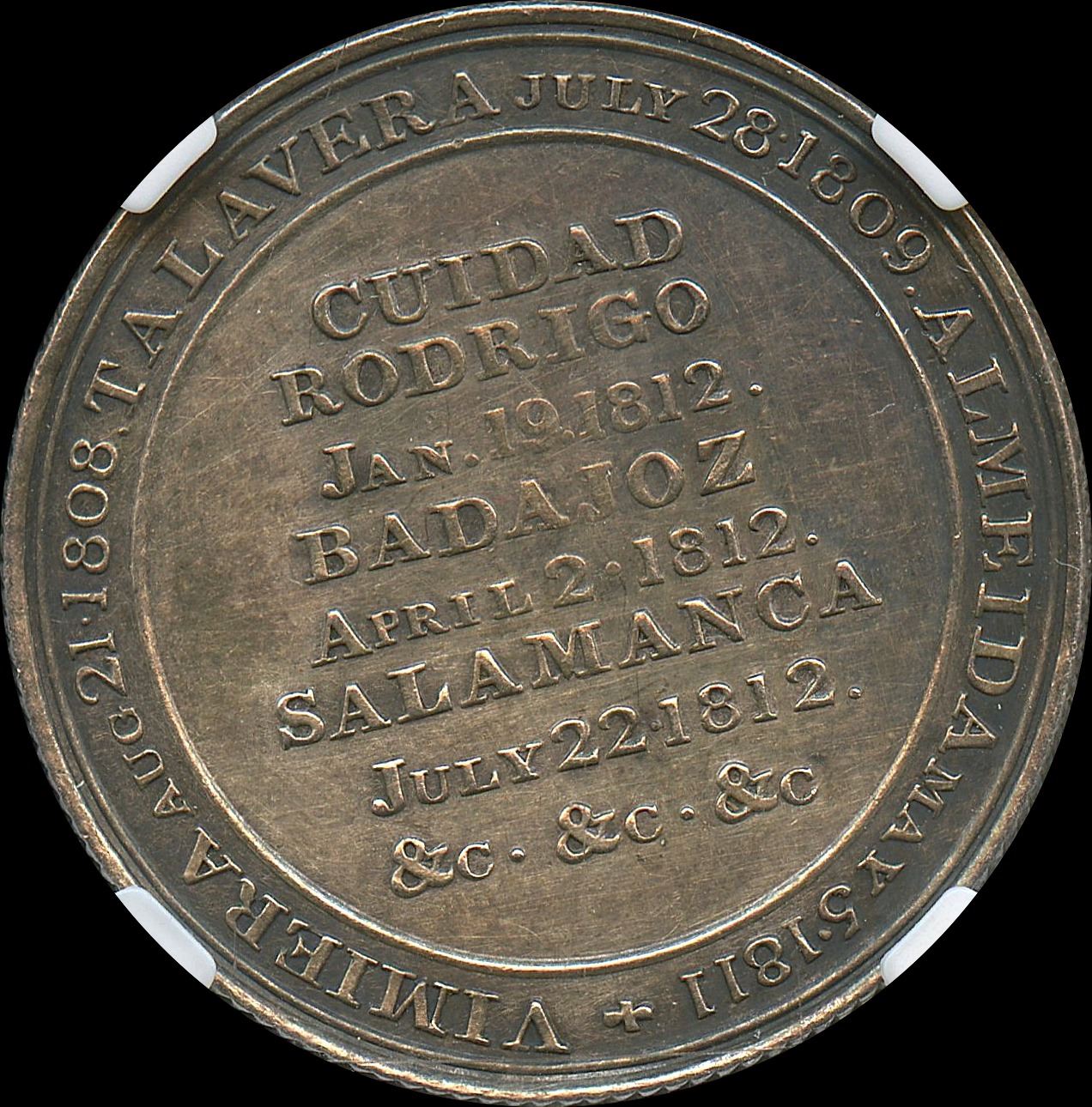 Br. 987. Wellington Peninsular Token Silver. CH-WE-11A1, Withers 1520a. Graded by NGC AU Details Surface Hairlines. Very Scarce in Silver. AU.