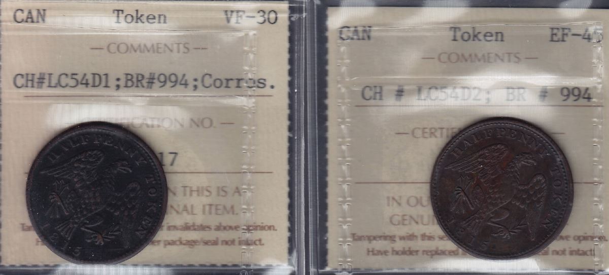 Br 994. Pair of Eagle Halfpennies, 1815.