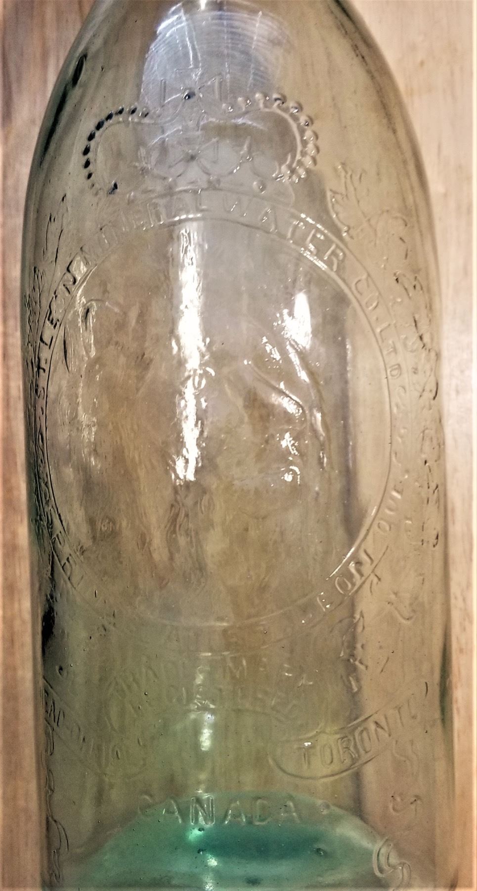 St. Leon Mineral Water Co. Ltd. 2 Quart Bottle. Springs at St. Leon, Quebec. Head Office Toronto, Canada. Relates to Breton 613, 616-619. Clear glass with a green tinge.