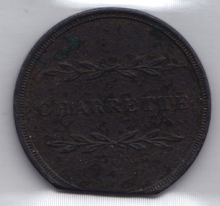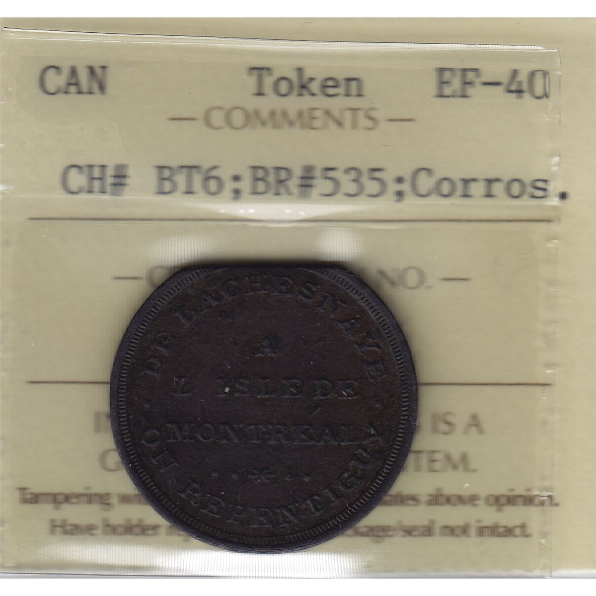 Bridge Token from Isle de Montreal to Repentiguy BR 535 CH BT6, ICCS EF-40. Corrosion, clipped.