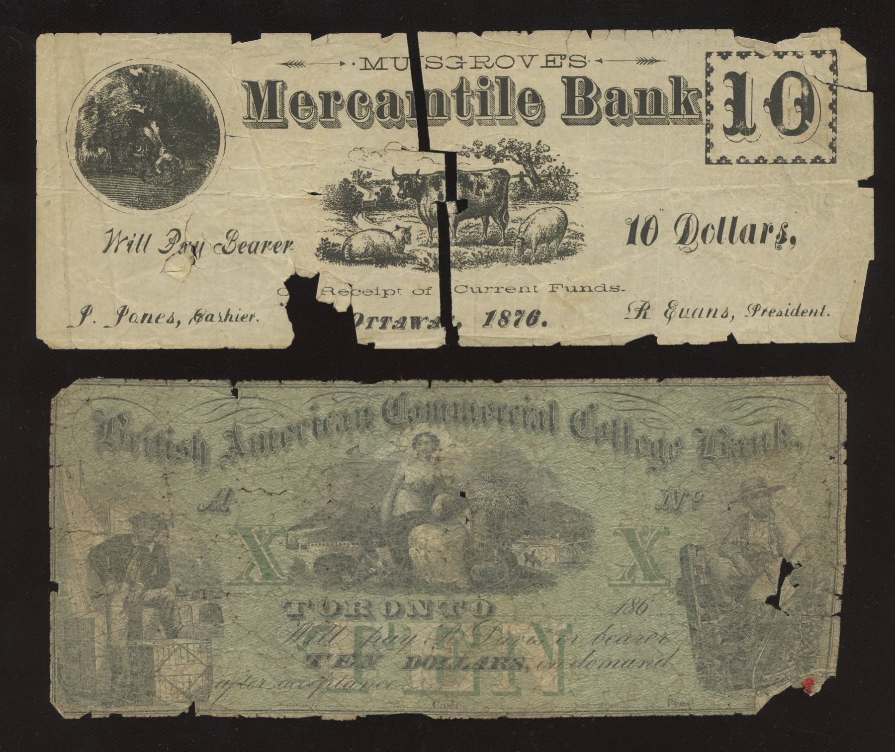Toronto, Ontario. ON-625-10 (damage), Ottawa, Musgroves Mercantile Bank, ON-400-10 ( damaged). 2 pcs.