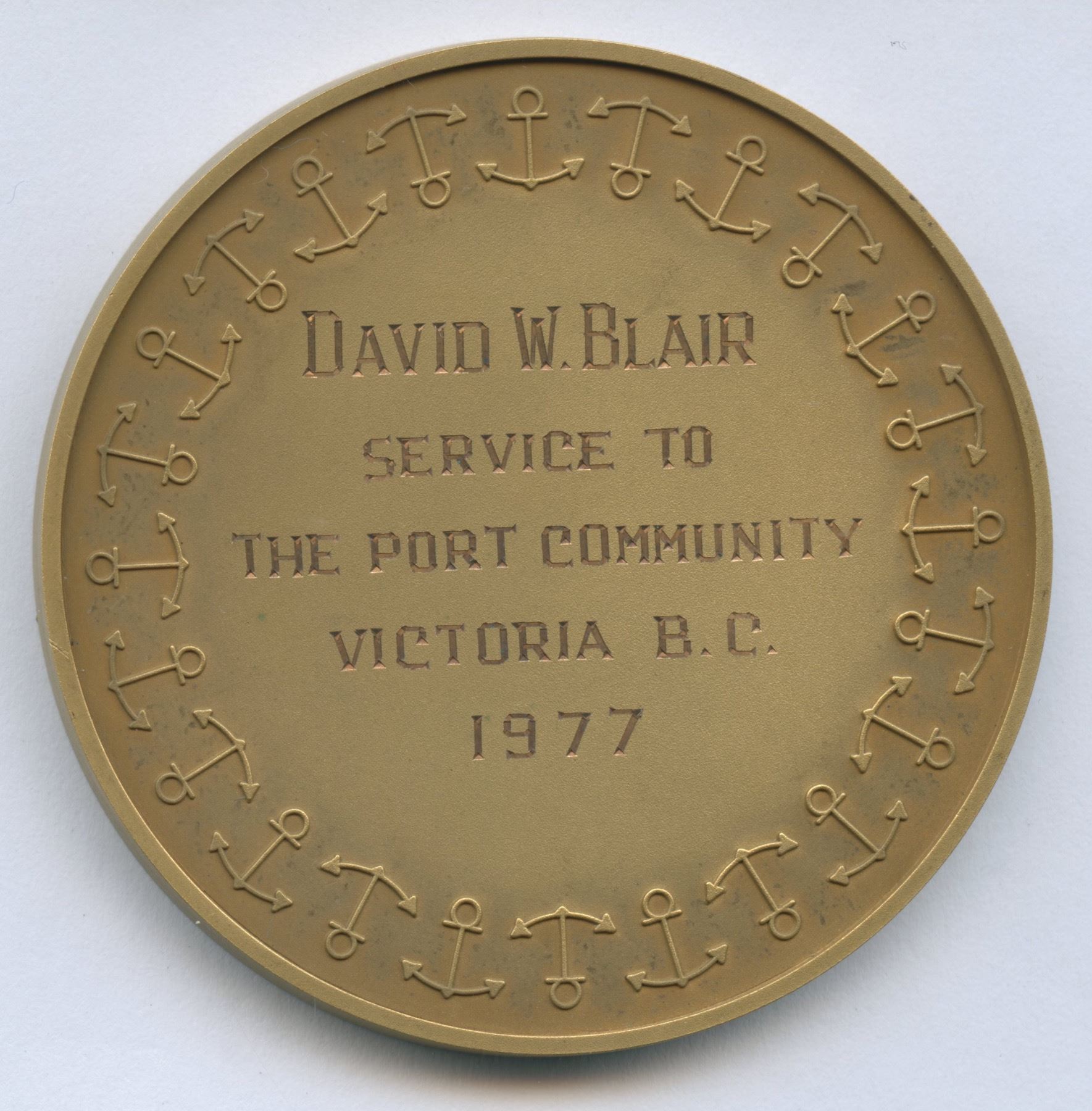 Medal of Merit, Canadian Port and Harbour Association; named to David W. Blair for service to the port community, Victoria, BC, 1977, gold filled. Birks in case of issue.