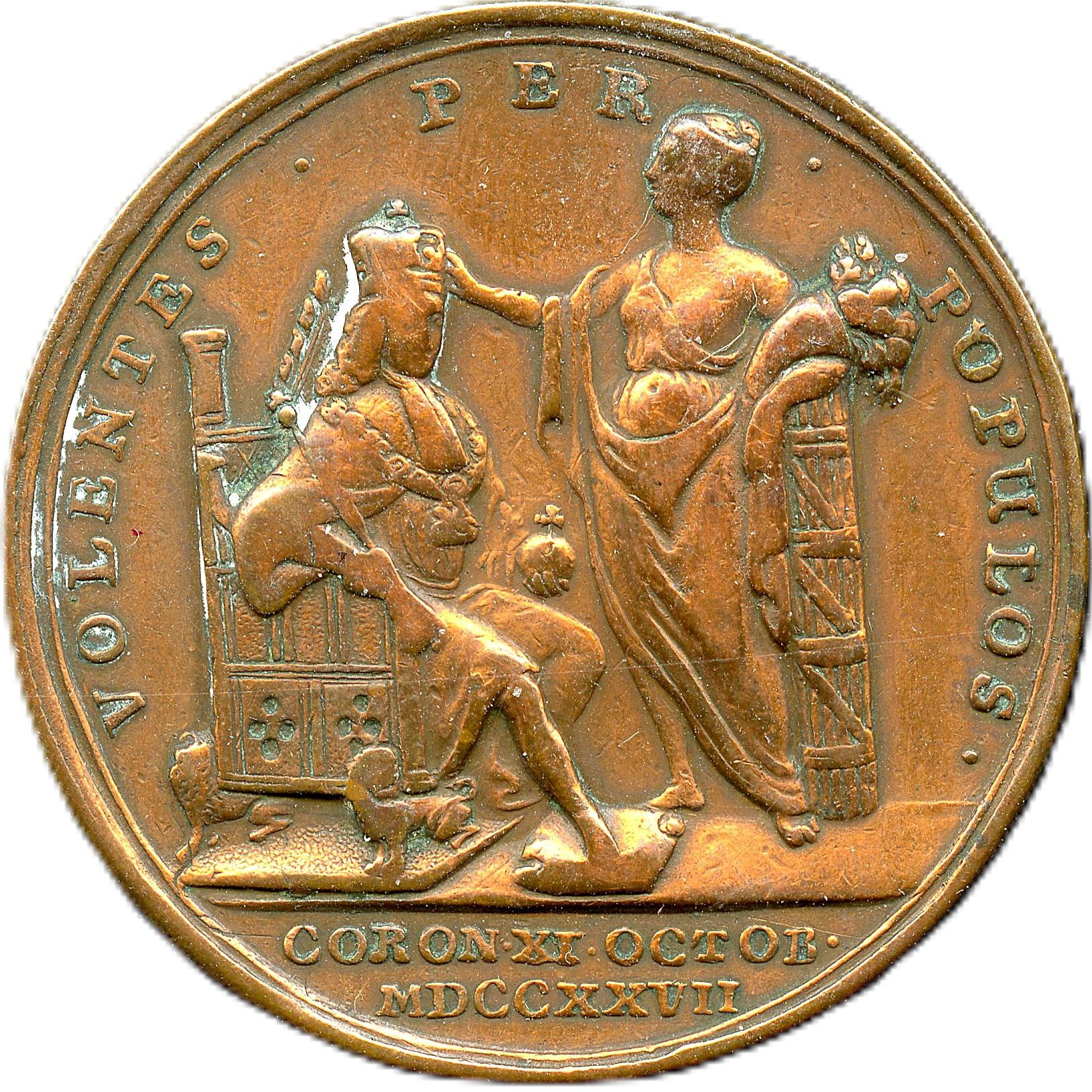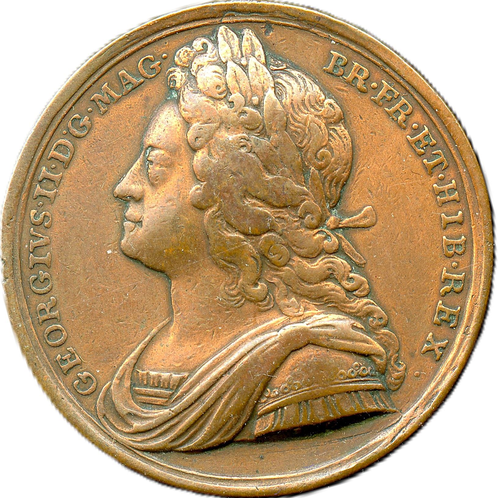 British Historical Medal. George II Coronation Medal. Bronze. Eimer 510. 34.4mm, 18.8g. Signed J C (John Croker). Surfaces are unnaturally subdued from an old cleaning. VF.