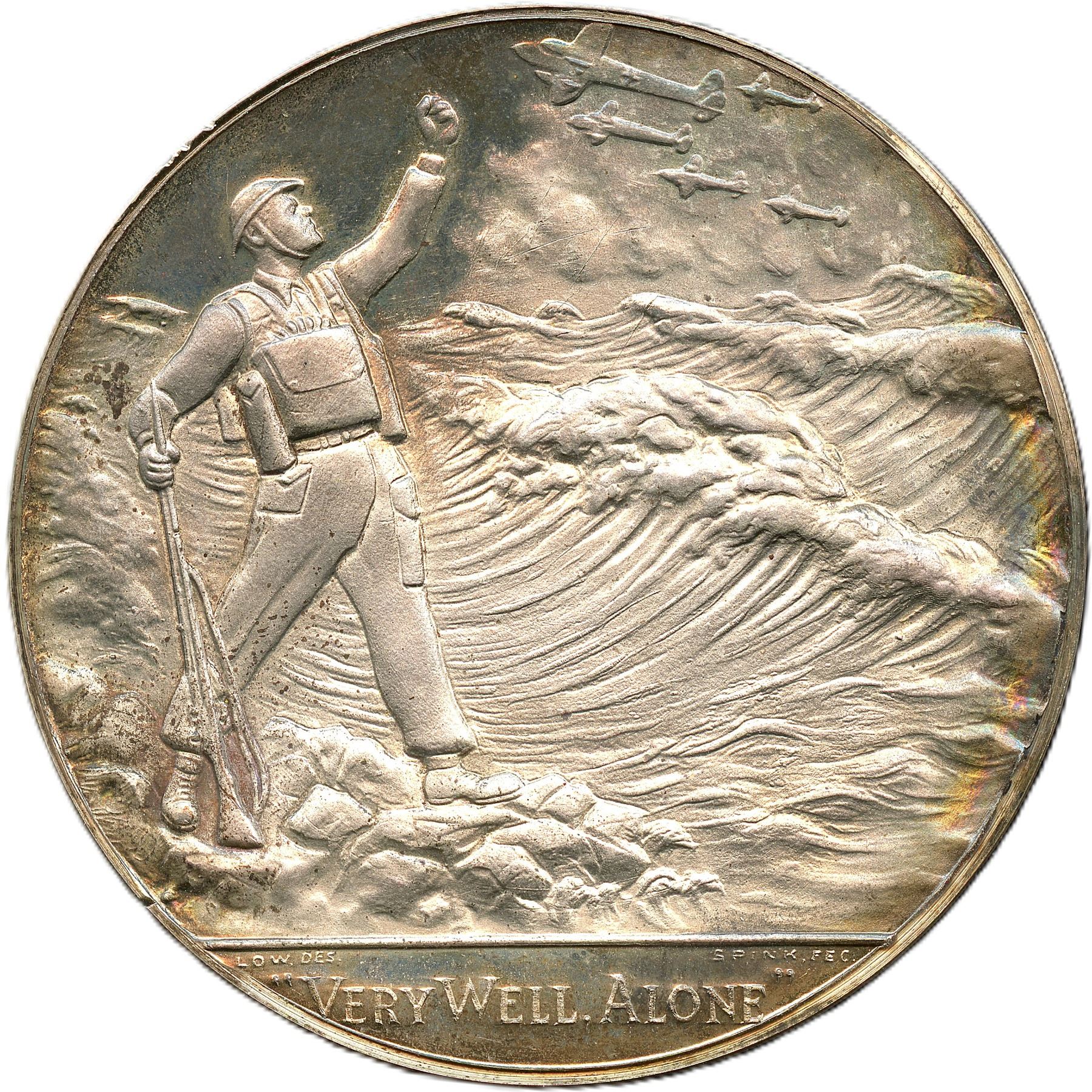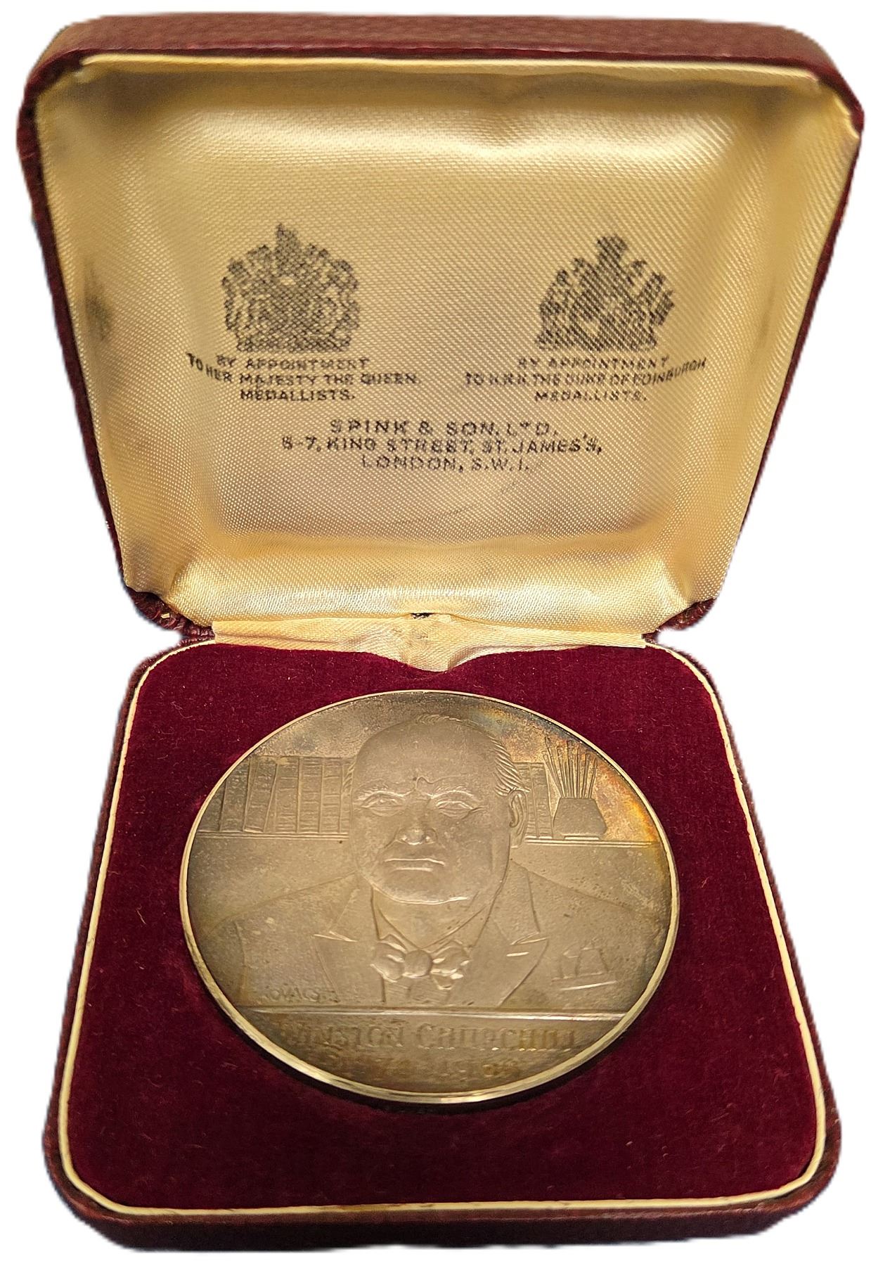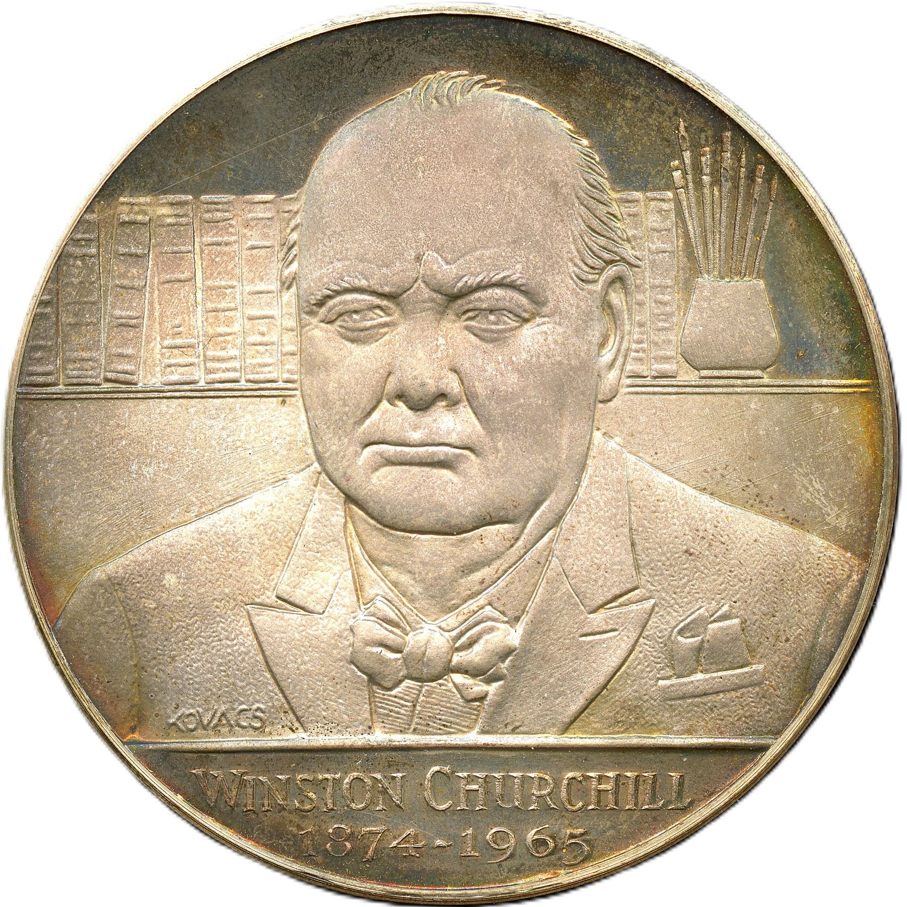 British Historical Medal. Winston Churchill 1874-1965 Medal Silver. Signed Kovacs on obverse and Spinks on reverse. 57.1mm, 81.4g (2.4207ASW). "Very Well Alone". Housed in its original case of issue. UNC.