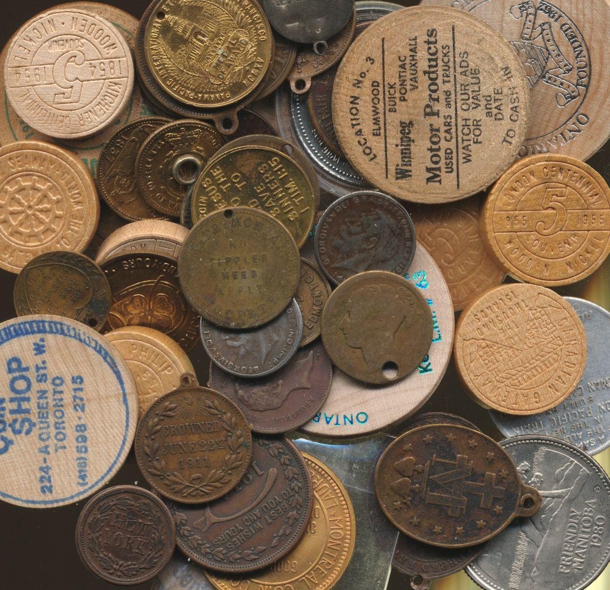 Interesting lot of 16 woods, 3 trade dollars, 5 exhibition pieces, 9 Victorian game counters and 22 pieces to be discovered. Should be inspected.*