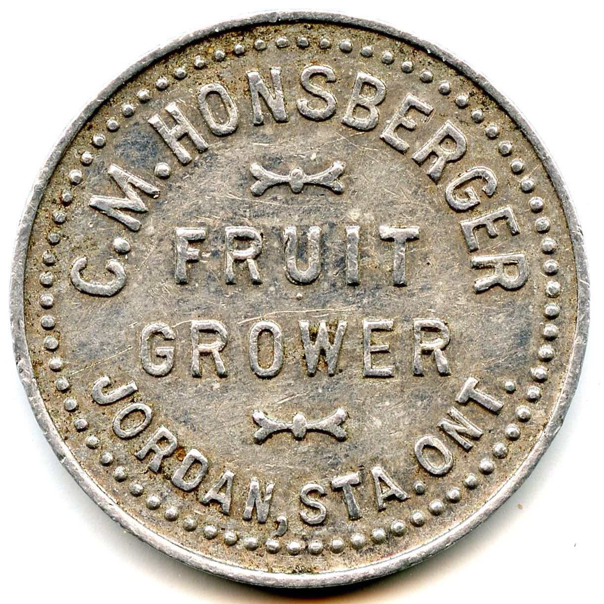C.M. Honsberger, Jordan Station, Ont. Fruit Picker Tokens, McColl 731 - Lot of 2