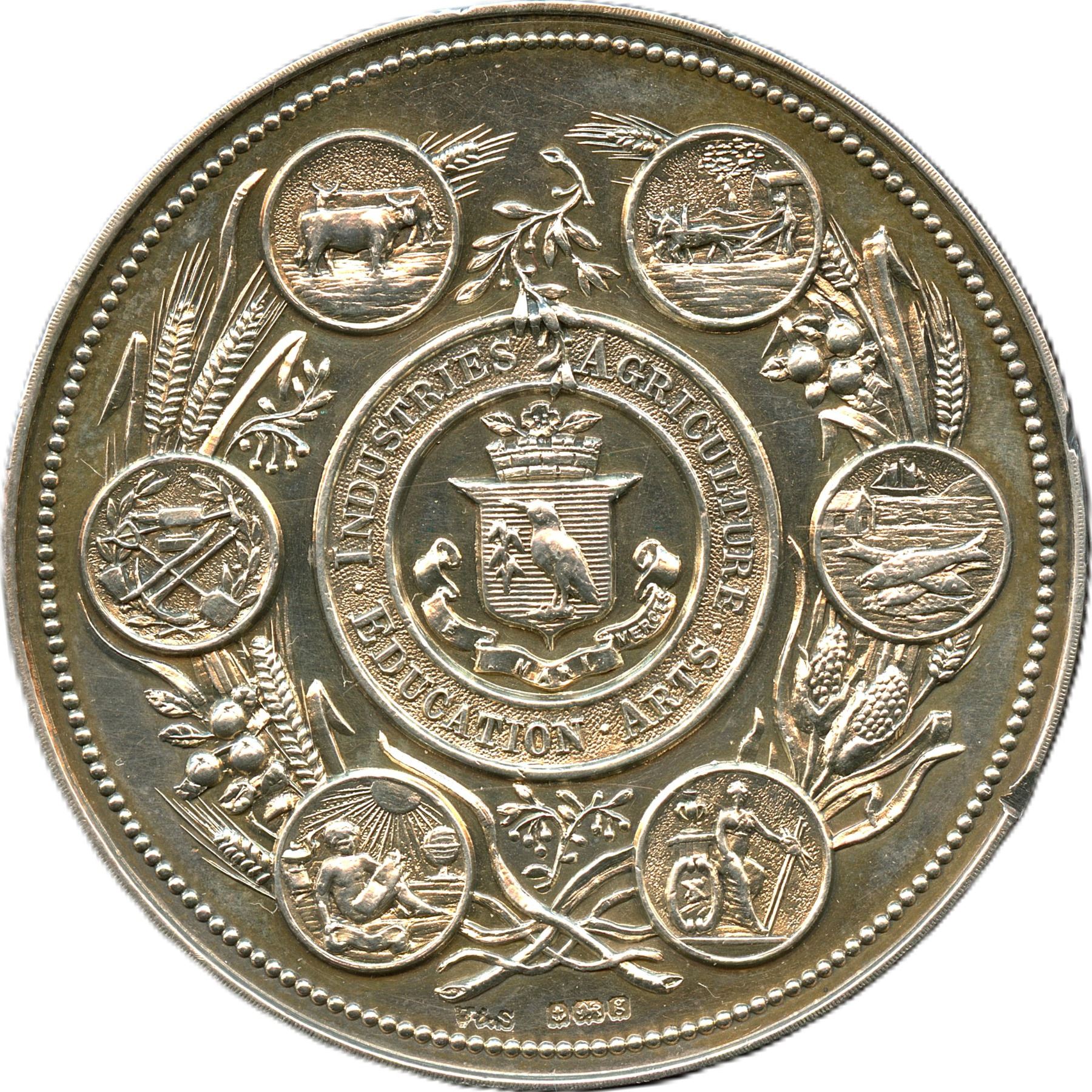 51mm, 63.5g, V&S and hallmarks on One Line. Lightly cleaned surfaces that do not distract from the reflective surfaces. Light scratches are present in the fields, as well as rim bump at 3 o'clock on the reverse. Scarce. AU Details. 1pc. From the Geoffrey Bell Collection.