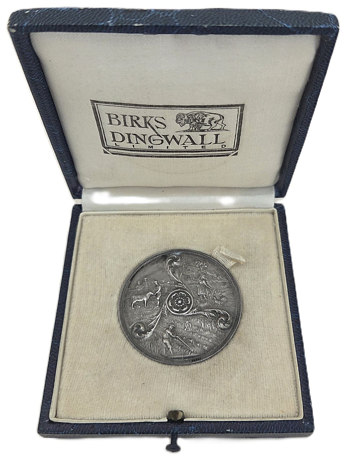 37.0mm, 25.8g, Silver, Signed Birks, Awarded "Ester Hazy Calf Club 1937 1st", Housed in its original blue paper wooden box with white velvet and white satin interior (Birks Dingwall Limited), AU. 1pc. From the Geoffrey Bell Collection.
