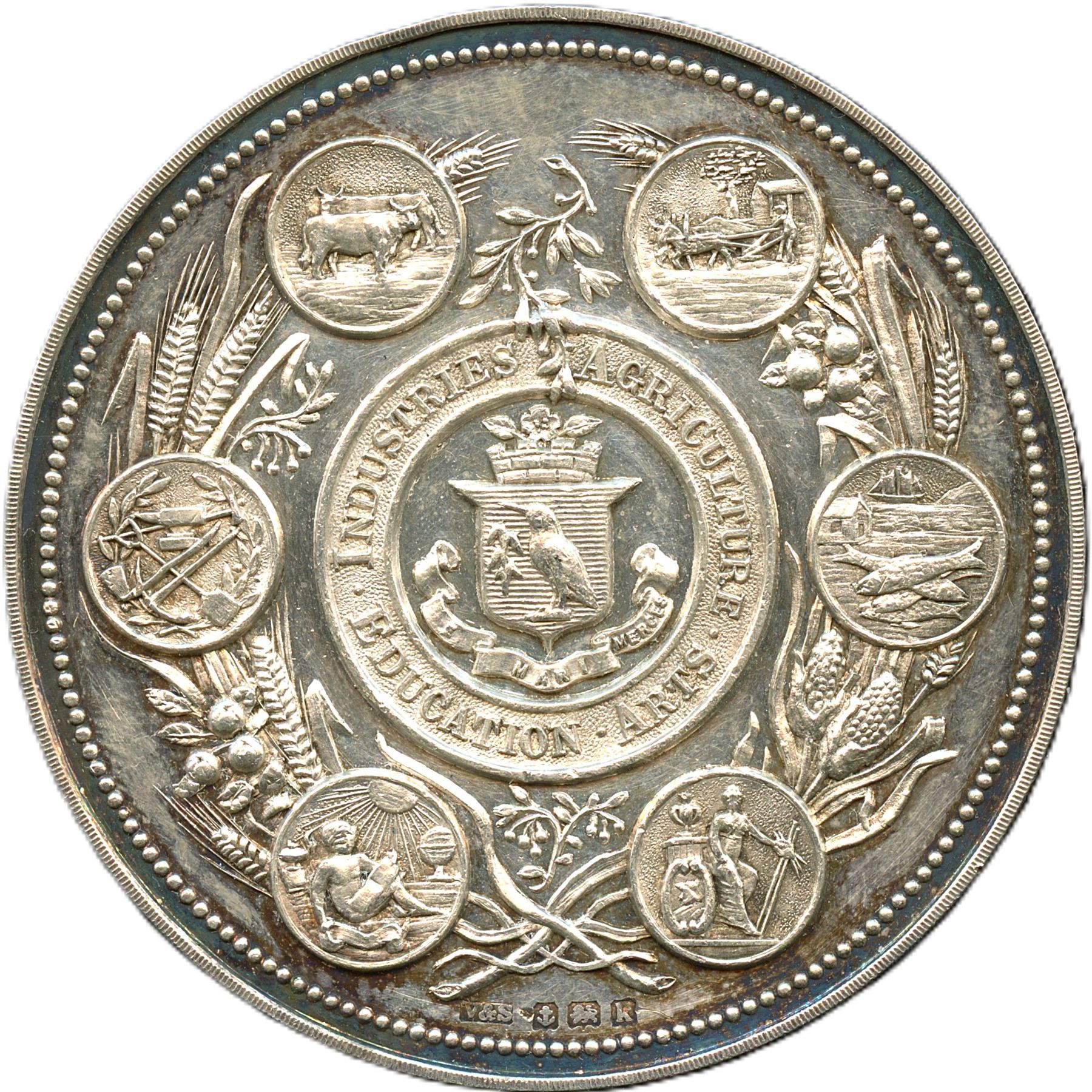 56mm, 63.5g, Original surfaces with violet patina over reflective fields. V&S and hallmarks on One Line. A glossy and unworn medal with only a few tiny marks. UNC. 1pc. From the Geoffrey Bell Collection.