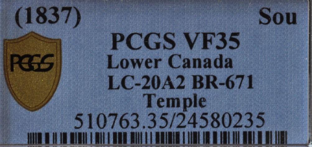 CH LC-20A2 - BR 671, Bas-Canada Commerce UN Sou Token, PGCS VF35 Ex:Temple.