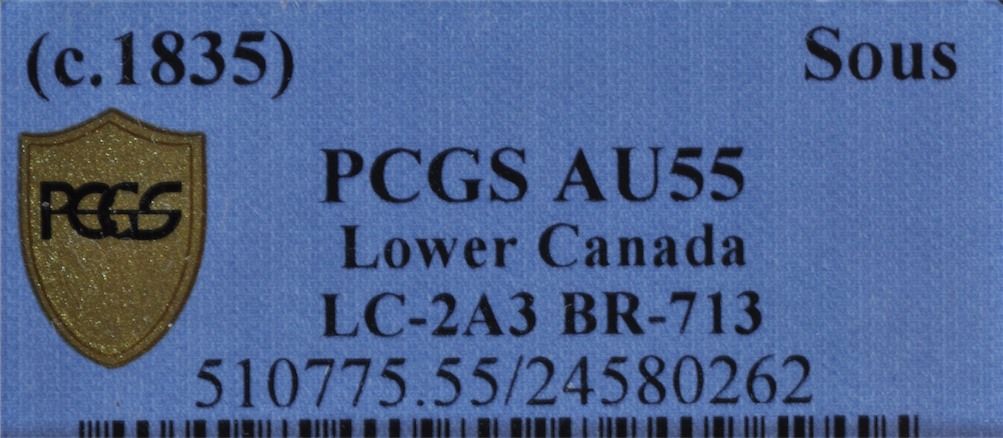 CH LC-2A3 - BR 713, Lower Canada Agriculture UN Sous Token, PCGS AU55. Ex:Temple.