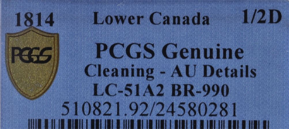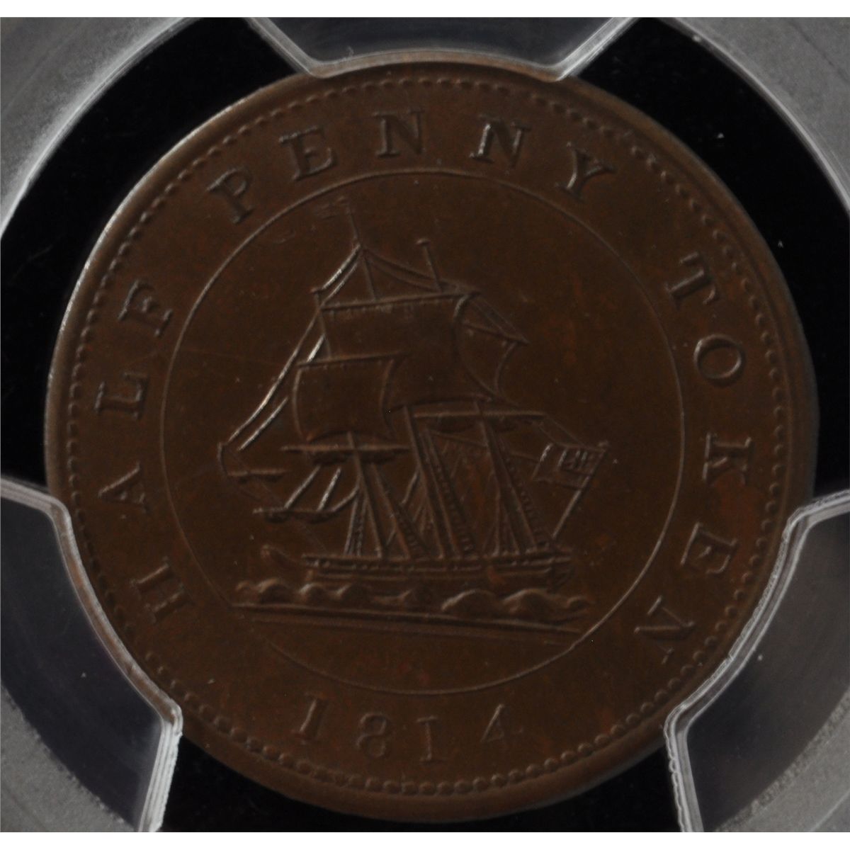 CH LC-51A2 - BR 990, 1814 Lower Canada Half Penny Token, PCGS AU details. Ex:Temple.