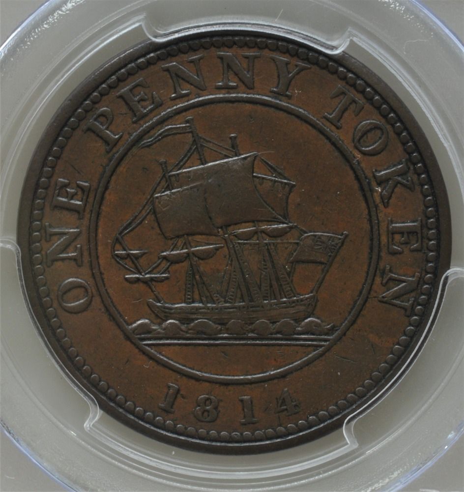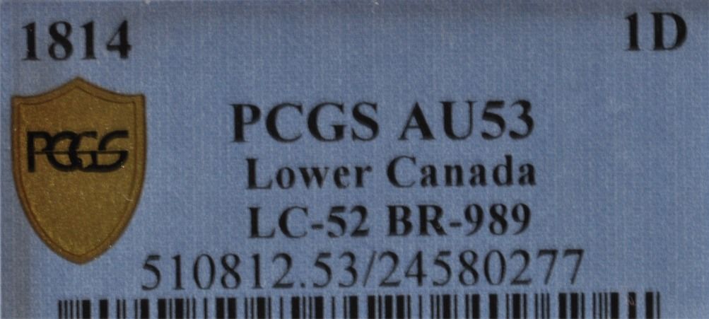 CH LC-52 - BR 989, 1814 Lower Canada One Penny Token, PCGS AU53. Ex:Temple.
