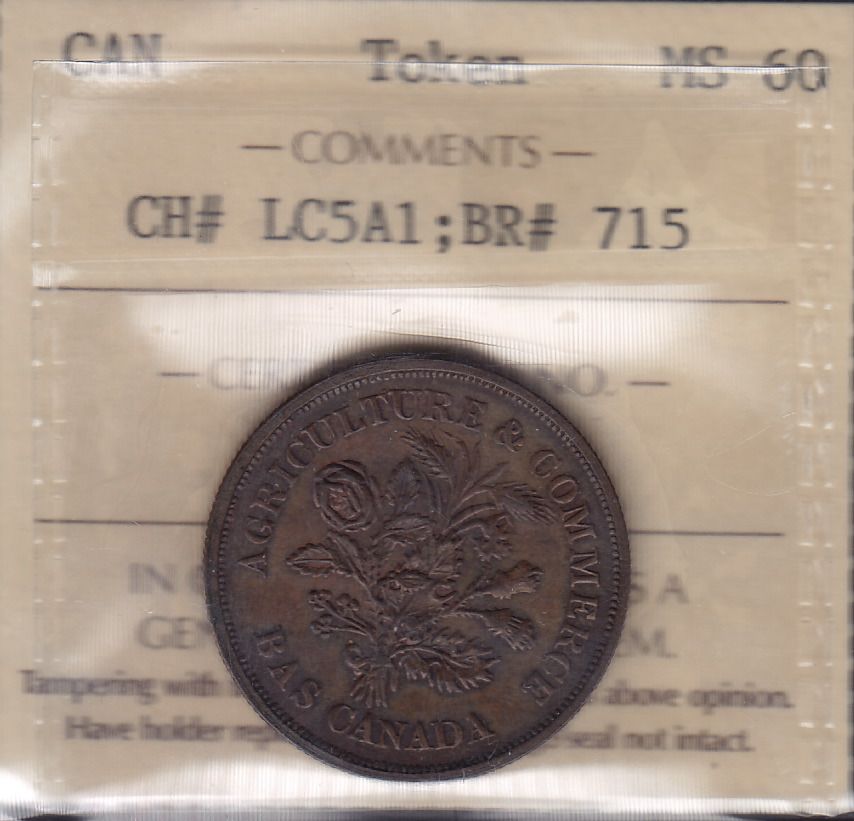 CH LC-5A1. BR 715, 1837 Belleville Issue, ICCS MS-60. Reeded edge open wreath and very scarce condition.