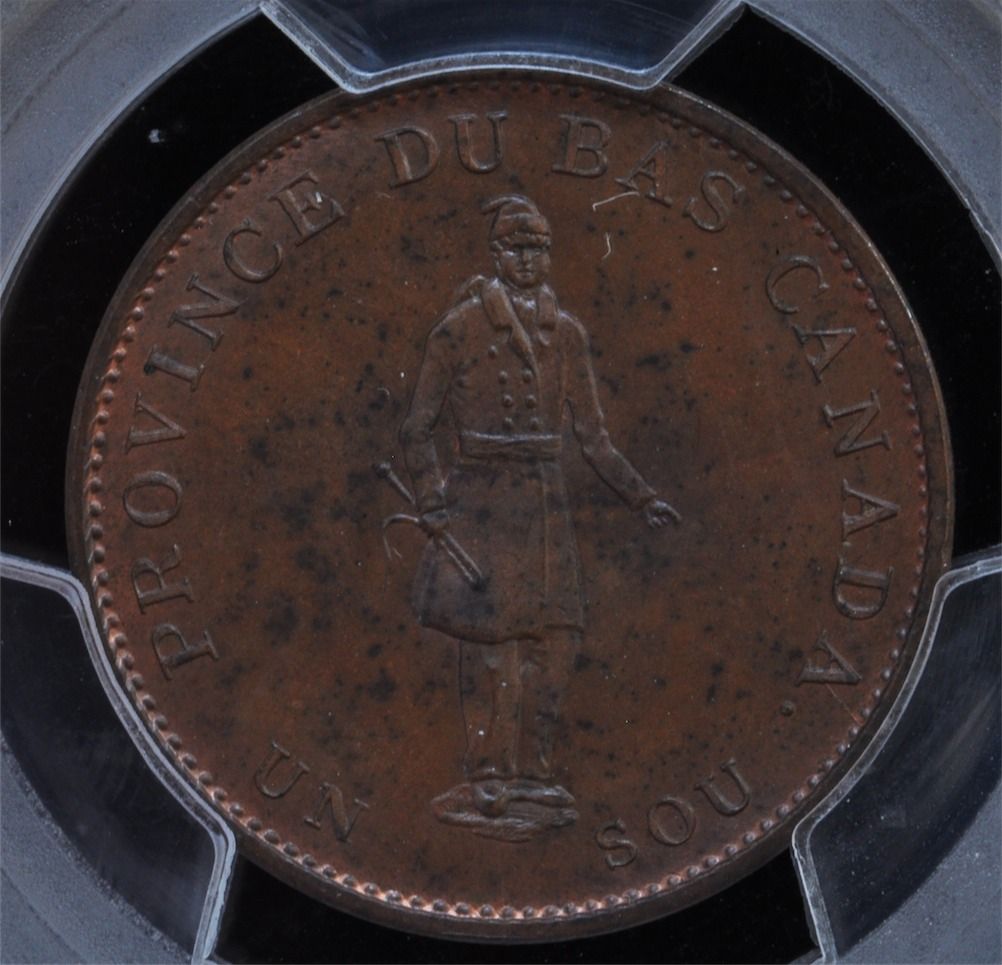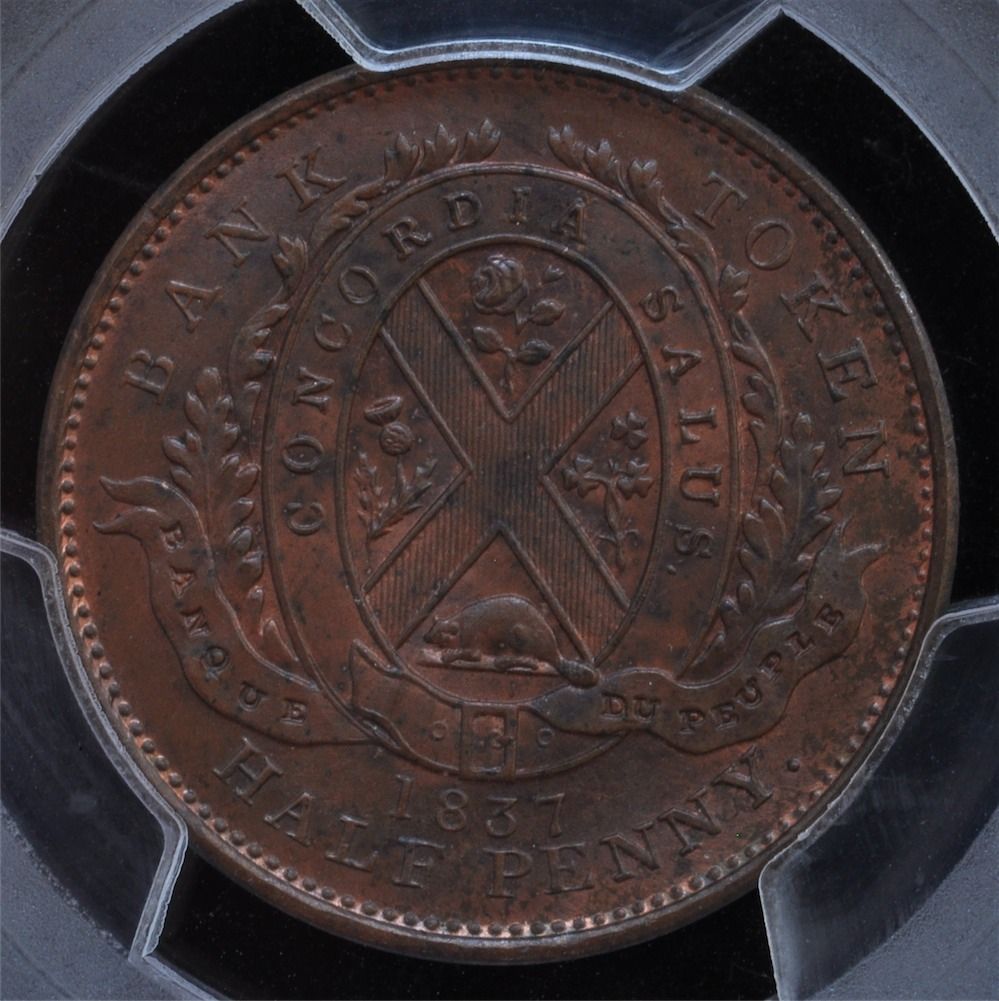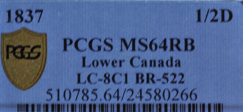 CH LC-8C1 - BR 522, 1837 Lower Canada Agriculture Half Penny Token, PCGS MS64 RB. Ex:Temple.
